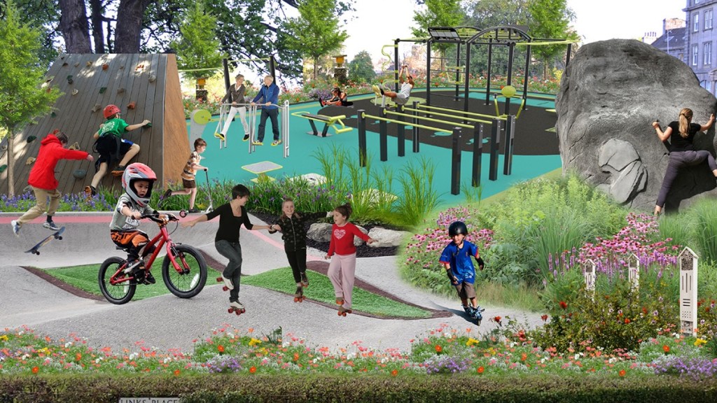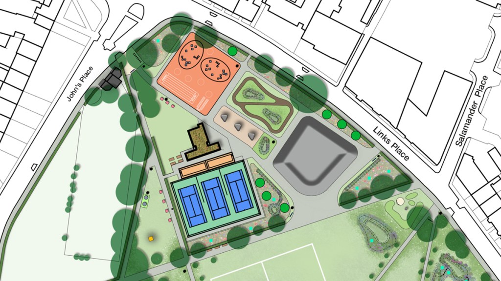 The masterplan includes lots of interesting developments, but, most importantly (from our perspective), it includes an activity park on the old bowling greens, along other active features such as a ‘trim trail’, 3km fitness loop and a ‘natural play area’ at the east of the Links.