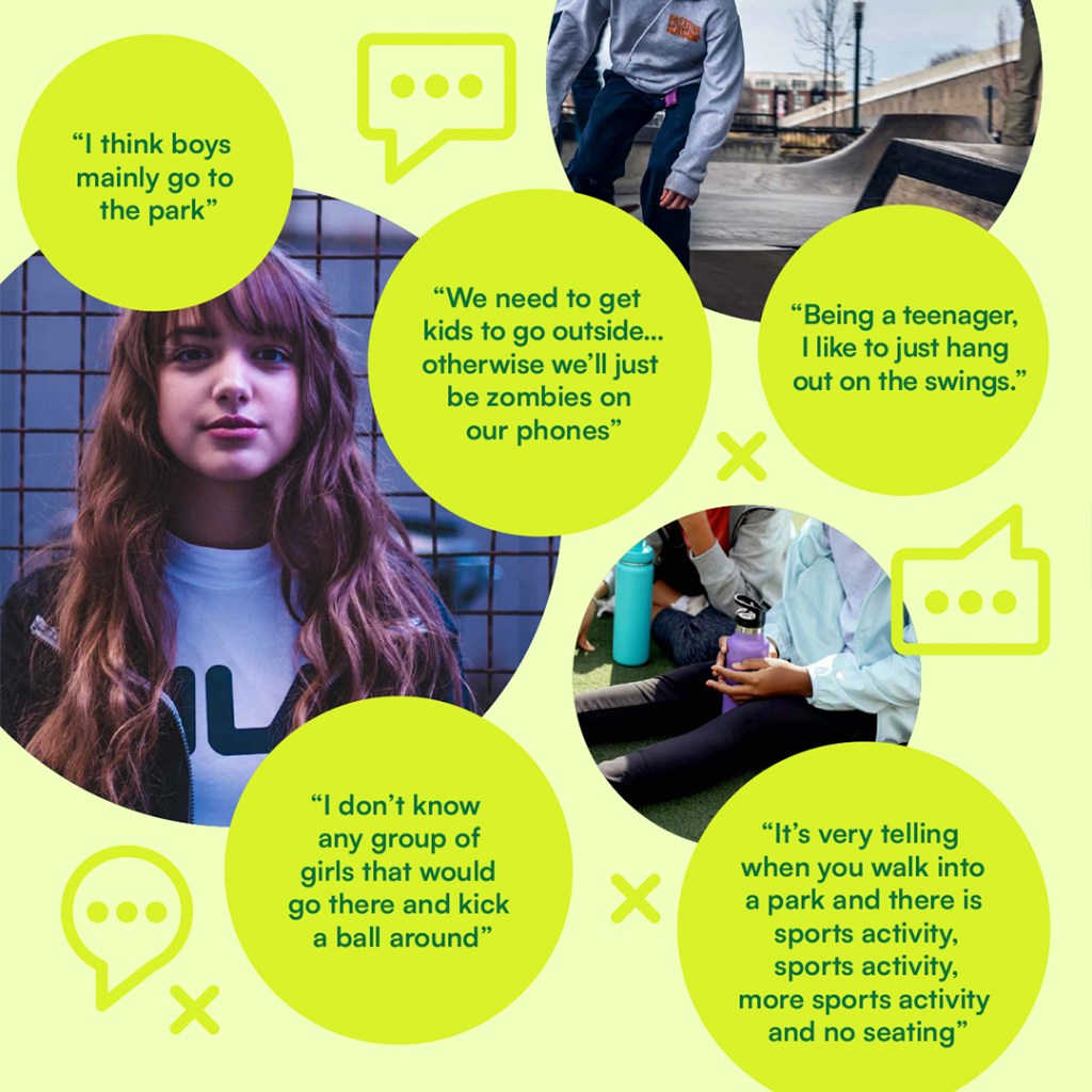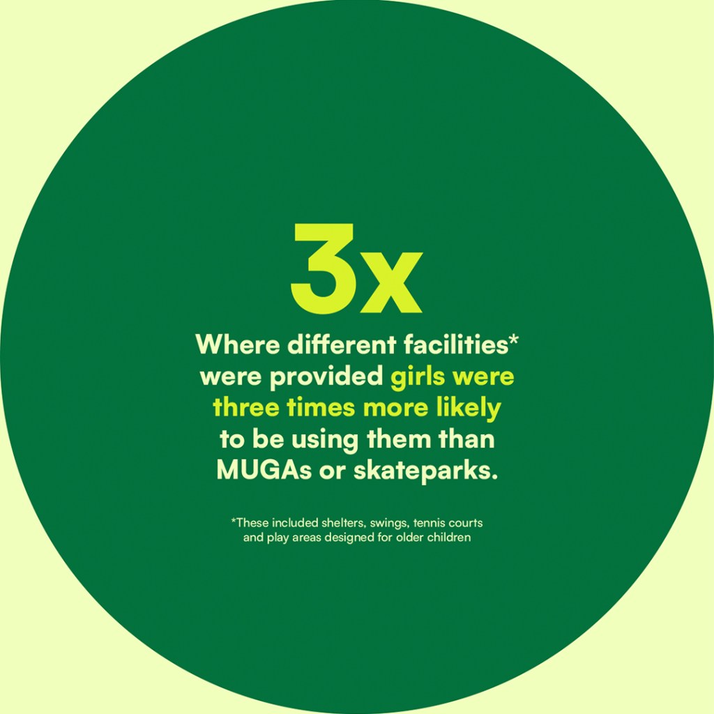 Powerful piece of research published by Make Space for Girls today – putting into numbers what we all suspected; that the status quo for facilities in parks isn’t working for teenage girls.